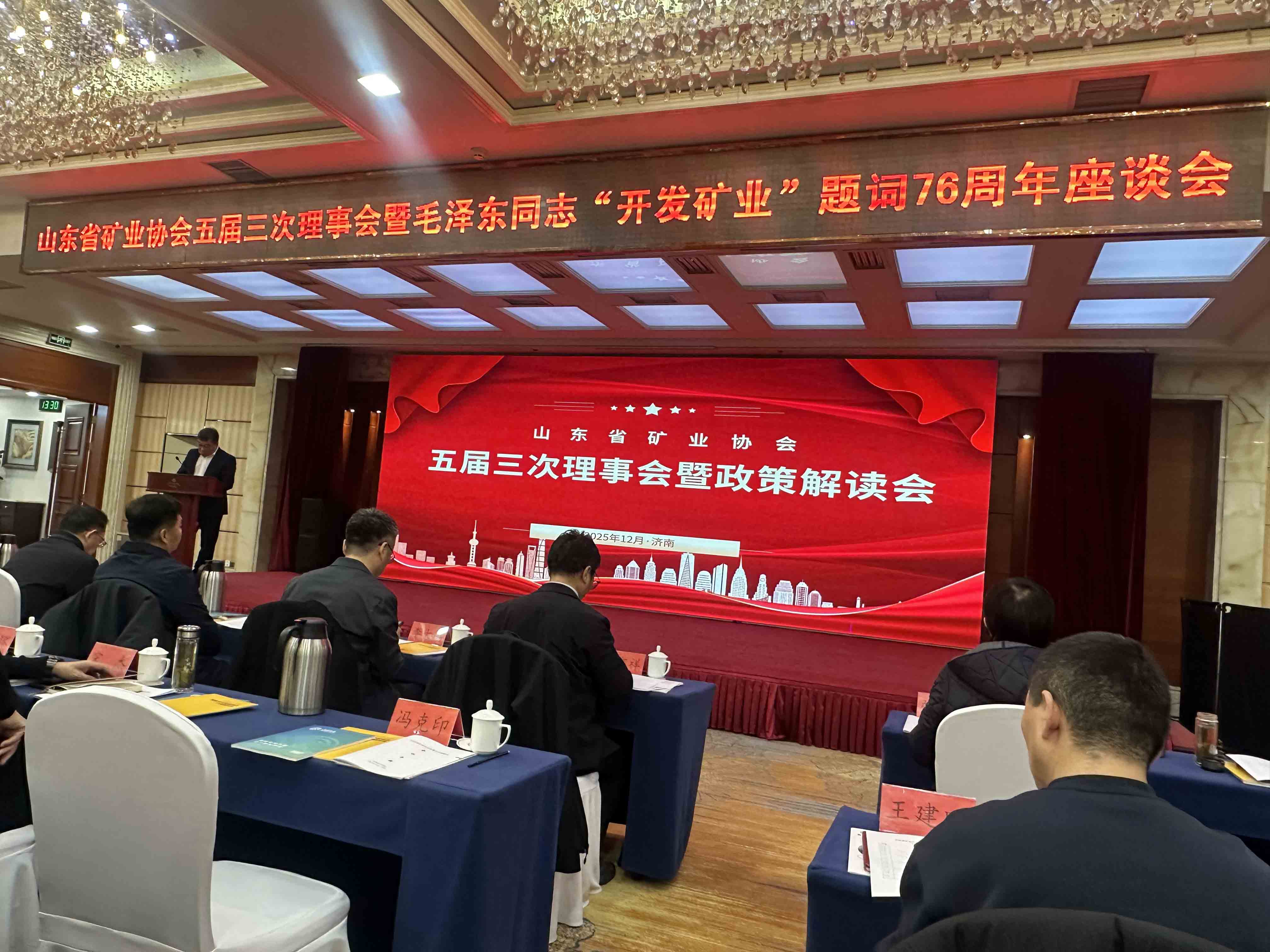 12月23日,山东省矿业协会五届三次理事会暨毛泽东同志“开发矿业”题词76周年座谈会、政策解读会在济南召开。山东钰镪地质公司作为协会副会长单位,委派代表出席本次会议,深度参与行业议题研讨,为山东矿业行业高质量发展建言献策。